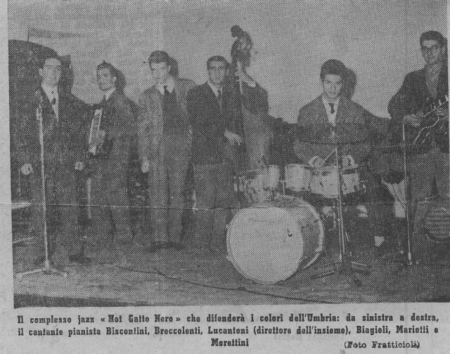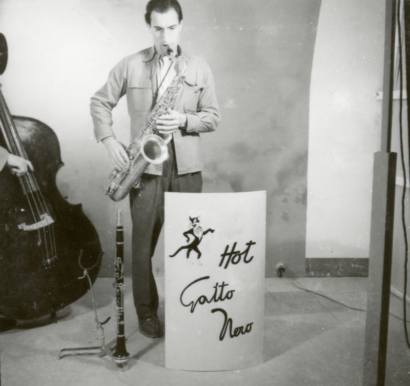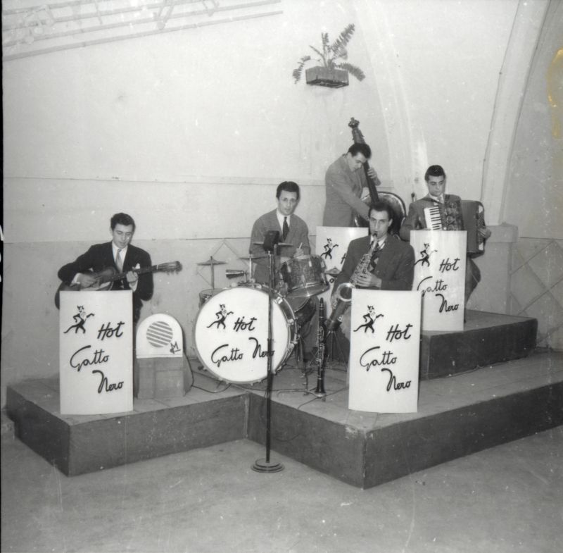 | 1952 | HOT GATTO NERO | -primo gruppo | galigani alfio - sax clarino | pierucci sergio - clarino sax | poccioli sandro - batteria | dell'aira - contrabbasso | motta gastone - pianoforte | marcelli marcello - vibrafono |
