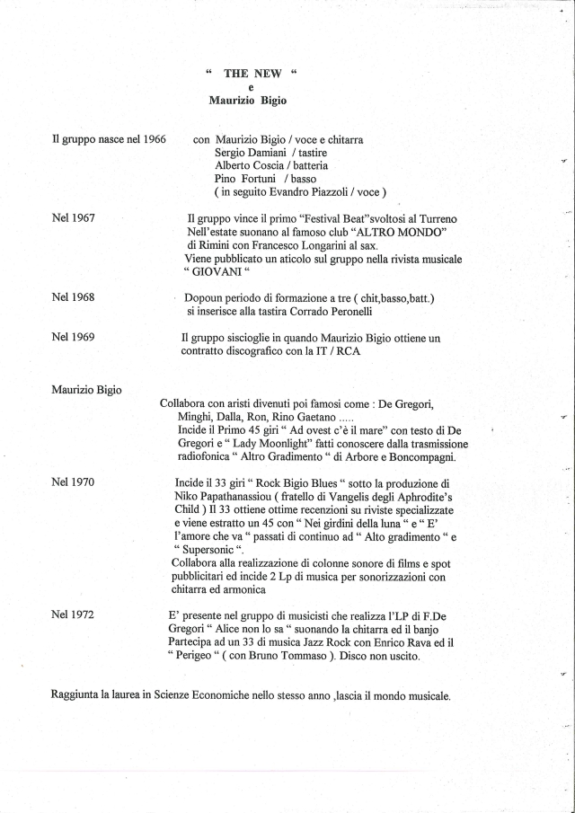 | I NEW | bigio maurizio - canto chitarra I | fortuni pinuccio - basso I | coscia alberto - batteria I | l |